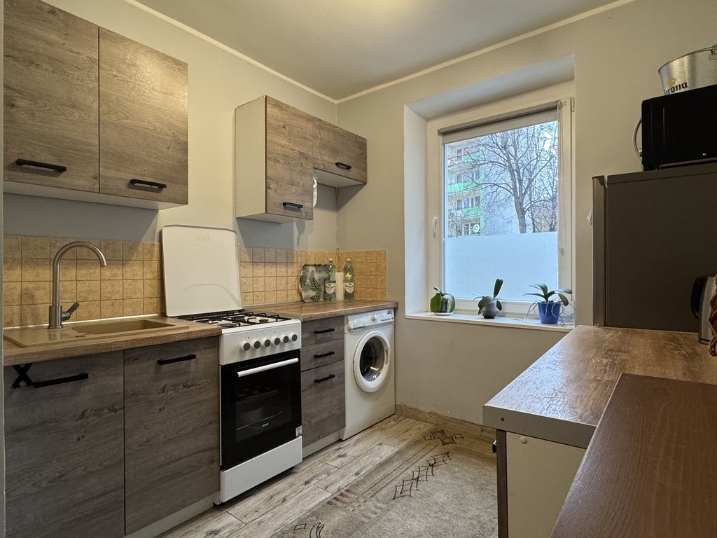 Układ pomieszczeń sprzyja wygodnemu wykorzystaniu przestrzeni. Mieszkanie jest jasne, zadbane i po odświeżeniu. Wszystkie widoczne na zdjęciach meble oraz wyposażenie kuchni i łazienki pozostają w cenie.