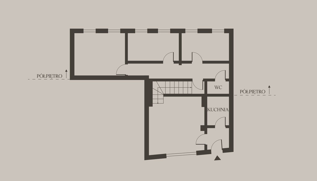 poziom ulicy – ok. 55 m2 – korytarz wejściowy, pokój, pomieszczenie socjalne, wc
