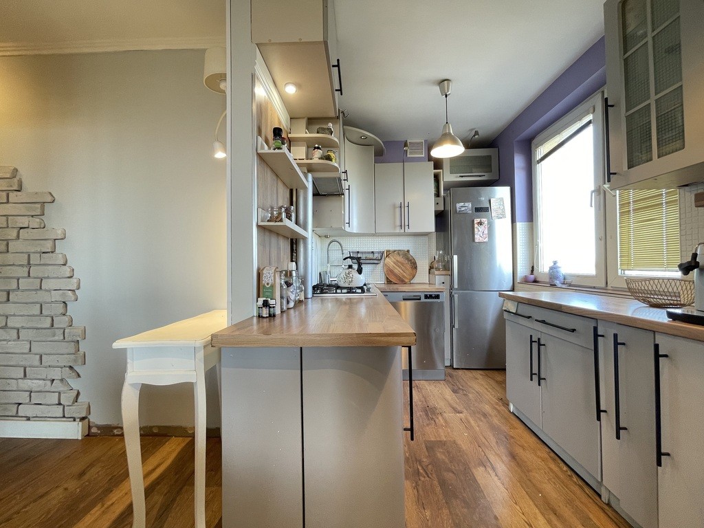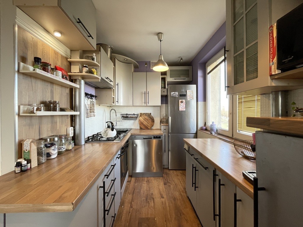 Aneks kuchenny – w pełni wyposażony, z lodówką, zmywarką, mikrofalą, piekarnikiem oraz ekspresem do kawy. Kuchnia oferuje dużo miejsca do gotowania oraz przestronność szafek.